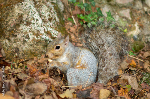 © mashiro2004, Obraz premium gray squirrel in the foreground eating peanut