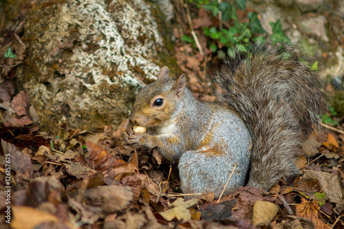 © mashiro2004, Obraz premium gray squirrel in the foreground eating peanut