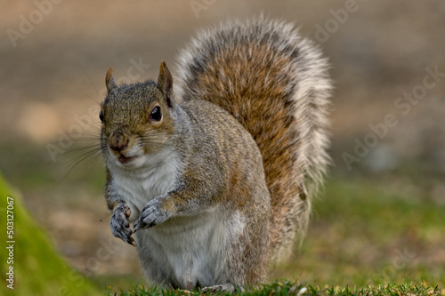 © Krzysztof, Obraz premium gray squirrel looking for breakfast