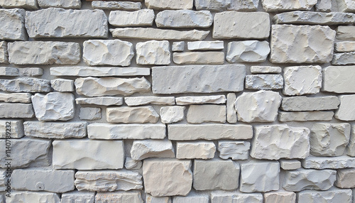 © Anastasiya, Fototapeta premium Gray stone wall background with textured bricks