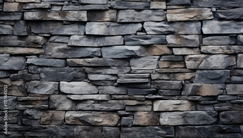 © Ruslan Gilmanshin, Fototapeta premium gray stone wall made of rugged, weathered rocks stacked in an intricate, textured pattern, evoking rustic charm and architectural durability