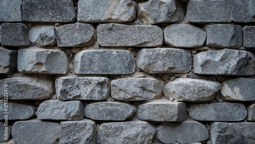 Fototapeta premium Gray stone wall texture background featuring rugged stones stacked in a natural pattern ideal for architectural and design applications.
