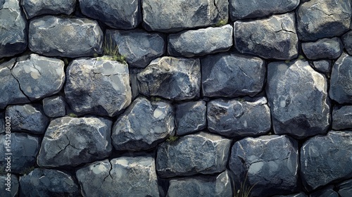 © ShakkBbo9495, Obraz premium Gray stone wall texture shows irregular, fitted stones.