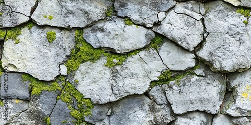 © AdibaZR, Obraz premium Gray Stone Wall with Moss