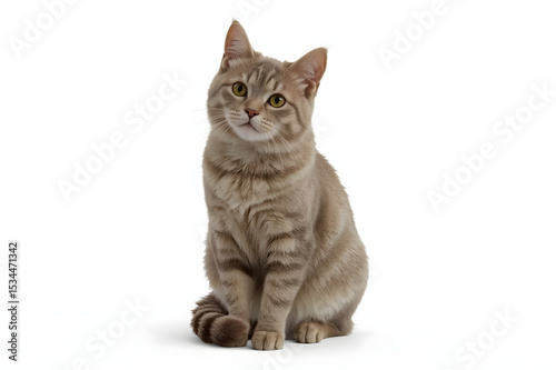 © Ficky, Obraz premium Gray tabby cat sitting, looking up