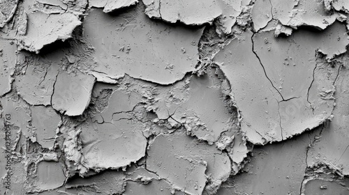 Obraz premium Gray textured plaster wall surface with cracks and peeling layers
