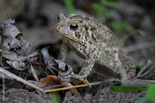 © Teresa Considine, Fototapeta premium Gray Tree Frog Sitting in Leaves, Close-Up