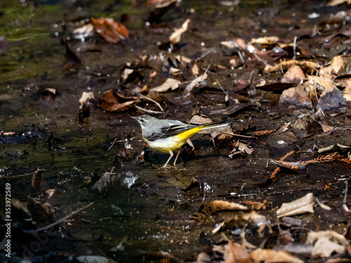 Fototapeta premium Gray wagtail beside a forest stream 2