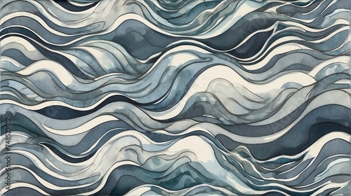 Obraz premium Gray water waves hand painted watercolor design background pattern from...