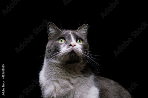 © Serhii Holdin, Obraz premium gray-white cat on a black background