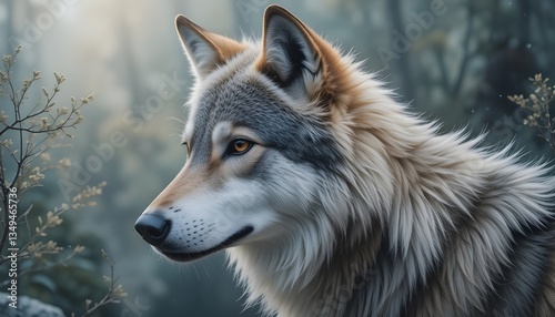 © manzarhussain, Fototapeta premium gray wolf canis lupus