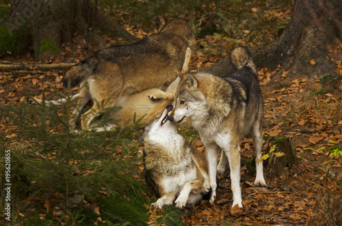 Fototapeta premium Gray Wolf, Canis lupus, Bavarian Forest National Park, Germany, predator in autumn forest
