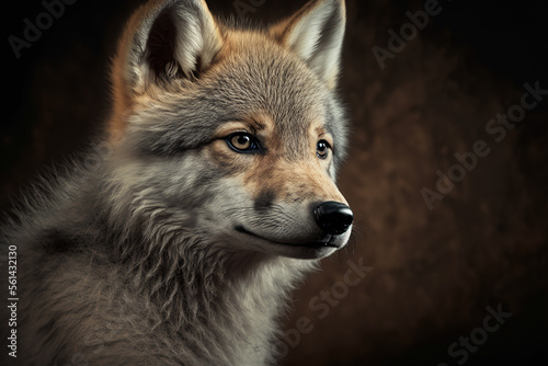 Obraz premium Gray wolf cub in forest. Digital artwork