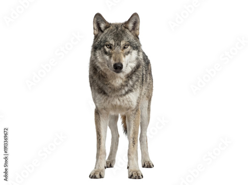 © Trixy, Obraz premium Gray wolf front view isolated on white background