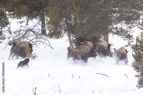 © Stan, Naklejka premium Gray Wolf hunting bison