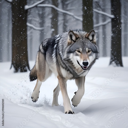 © ergin, Naklejka premium gray wolf in snow generative Al