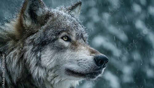 © stok, Obraz premium Gray Wolf in Snowy Forest.