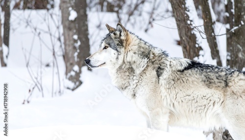 © Jilan, Naklejka premium Gray wolf in snowy forest