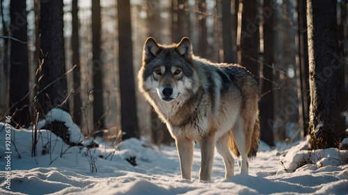 © MhaJaiD, Naklejka premium gray wolf in winter