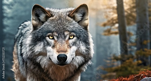 © Prashant, Obraz premium Gray wolf looking in the camera close up shot