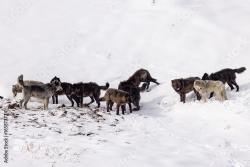 © Stan, Naklejka premium Gray Wolf pack in snow