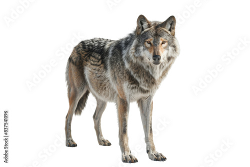 Fototapeta premium Gray wolf standing on a black background