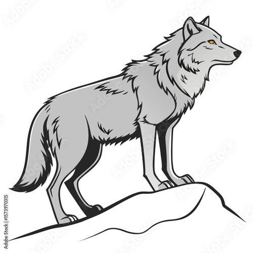 © rakibul0160, Fototapeta premium Gray Wolf Standing on White Hilltop Isolated white background