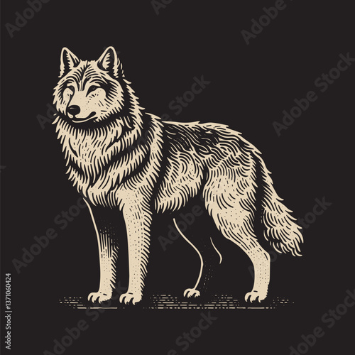Fototapeta premium Gray Wolf Vector Illustration – Vintage Retro Logo Design on Black Background