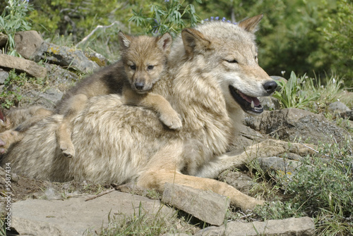 © outdoorsman, Obraz premium Gray wolf with her cub