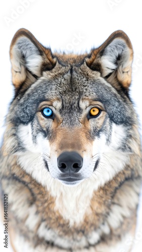© Poni, Fototapeta premium Gray wolf with two-toned eyes