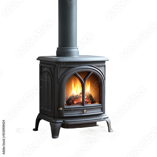 © Akibthelast1, Fototapeta premium Gray wood burning stove with fire burning