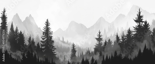 Obraz premium Grayscale Abstract Forest Mist, Cartoon