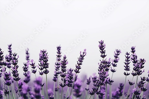 © Auon, Fototapeta premium Grayscale garden with only the deep purple of a lavender field remaining in color adding a dreamy effect
