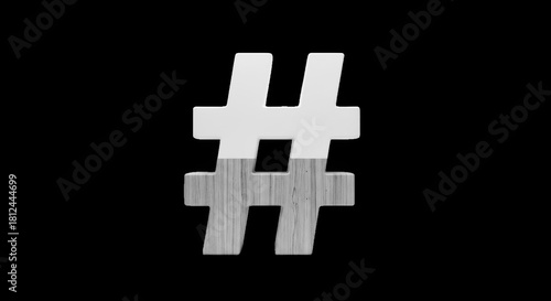 © Akram, Obraz premium Grayscale hashtag symbol on black background