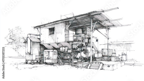 © Frendy, Obraz premium Grayscale industrial building drawing