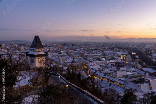 © Alexander, Naklejka premium Graz, Austria - January 11, 2021: Sunset in the winter