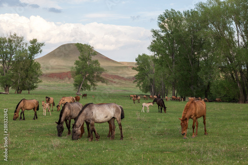 © Тамара Андреева, Obraz premium Grazing horses in the open spaces of Bashkortostan