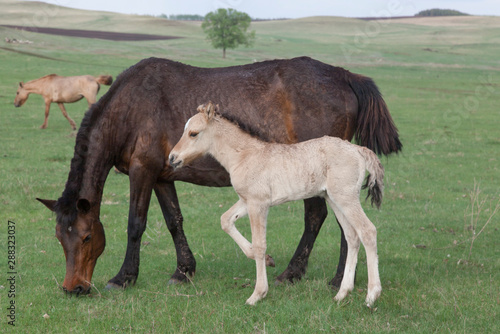 Fototapeta premium Grazing horses in the open spaces of Bashkortostan