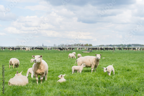 © Ivonne Wierink, Fototapeta premium Grazing sheep and cows in meadow