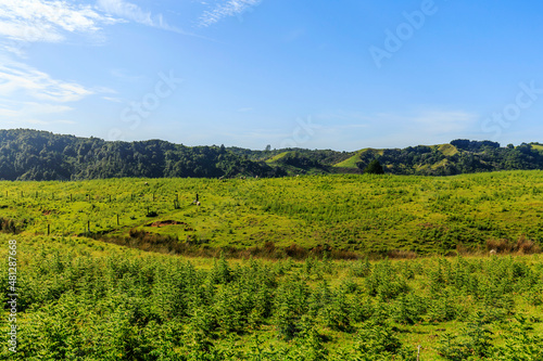 © Natalia, Fototapeta premium Grazing sheep on a meadow. New Zealand