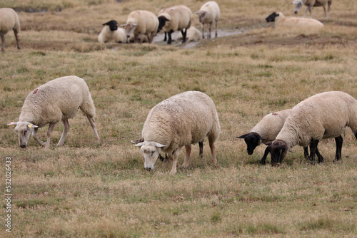 © ChiccoDodiFC, Obraz premium grazing suffolk sheep with black head and legs in Europe