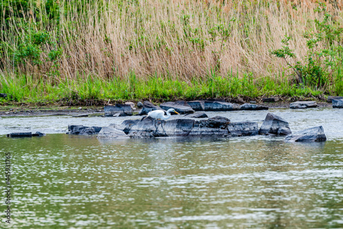 © PitoFotos, Obraz premium Great blue and white herons by the st. Lawrence river side