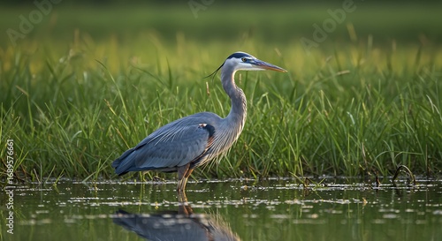 © Fenti, Naklejka premium Great Blue Heron in Wetland Habitat.