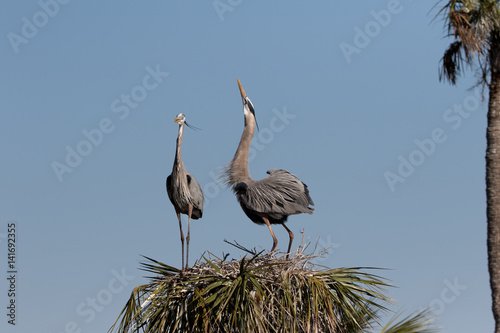 © Dennis Donohue, Fototapeta premium Great Blue Heron Nest building at Viera Wetlands in Florida
