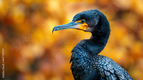 © Bubi Studio, Naklejka premium Great Cormorant with Blurred Nature Background in Autumn