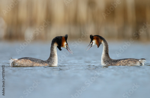 Obraz premium Great Crested Grebe, waterbird (Podiceps cristatus) in mating season