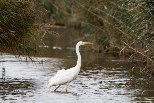 © Alicia, Naklejka premium Great egret (Ardea alba) walking through the water