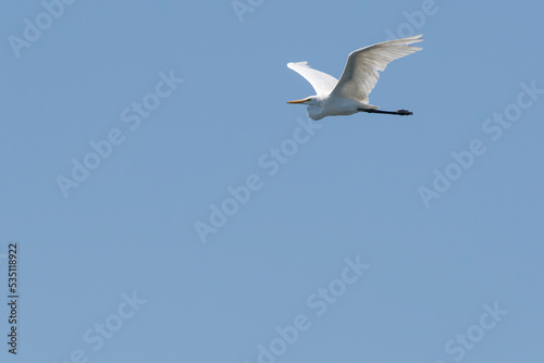 © 雅文 大石, Fototapeta premium Great egret flying in blue sky