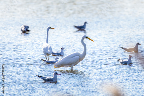 Fototapeta premium Great Egrets in Longfeng wetland of Daqing city Heilongjiang province, China.