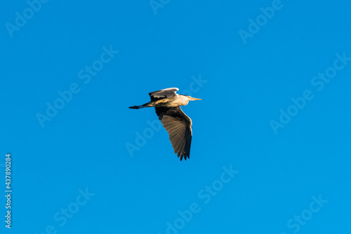 Obraz premium Great gray heron flying all wings deployed